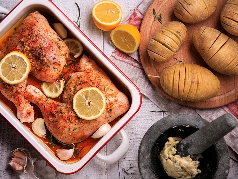 "Ćwiartki z kurczaka zapiekane z ziemniakami i masłem czosnkowym to nie ćwierć a pełnia smaku. Tę potrawę przygotujesz nie raz, a raz po raz, gdyż cała rodzina będzie za nią wprost przepadać i się jej domagać." Napoleon