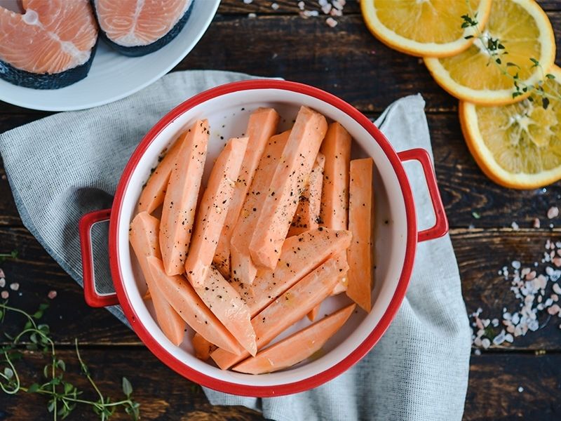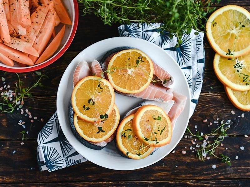 „Kulinarnej rutynie mówię: nie! Dlatego zarządzam na obiad łososia z nutą pomarańczy, a zamiast tradycyjnych frytek polecam pieczone frytki z batatów. Bezdyskusyjnie pyszne!”
