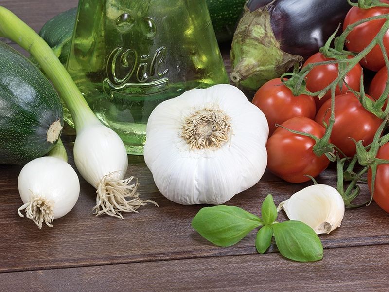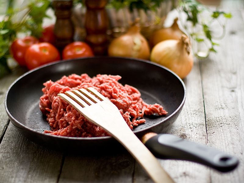 Ziemniaki ugotować al dente, ostudzić i pokroić w plastry. Bakłażany i cukinie pokroić w plastry, posolić i odstawić na 15 min. Po tym czasie można je podsmażyć na patelni bez tłuszczu lub podpiec w piekarniku. Cebulę i czosnek podsmażyć na oliwie z oliwek, dodać mięso mielone, doprawić solą, pieprzem, liściem laurowym, oregano i cynamonem. Pomidory pokroić w kostkę i dodać do mięsa, dusić około 30 min.