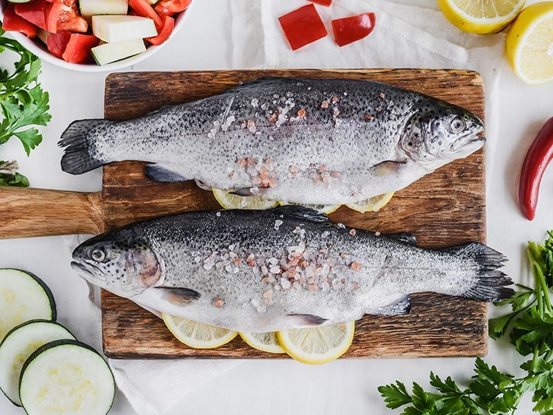 Pstrąga podajemy polanego powstałym sosem np. w towarzystwie bagietki.