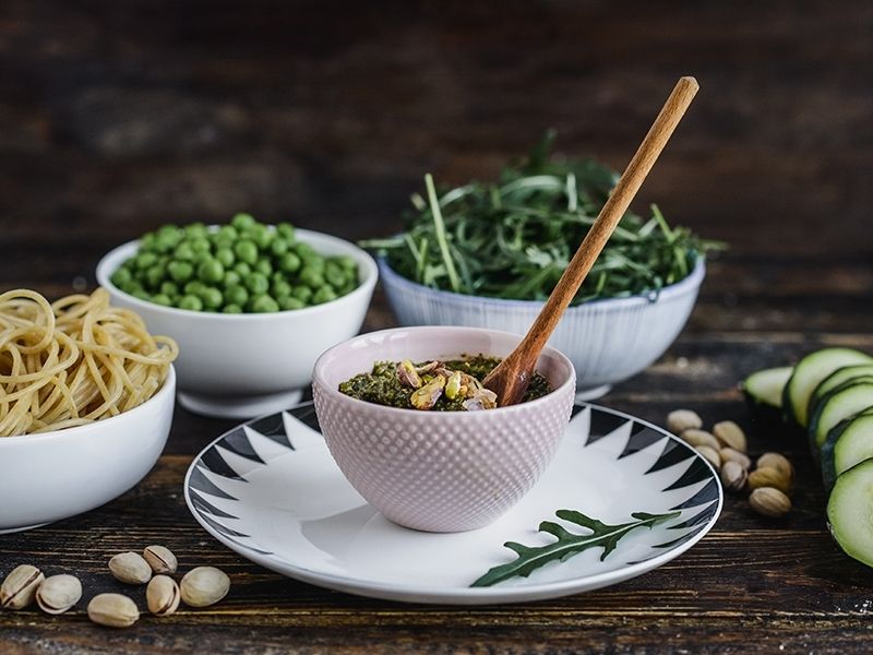 „W ramach nauki włoskiego zarządzam pesto di pistacchi. Do tego spaghetti, oczywiście al dente, oraz zucchini i świeża rucola. Oto zdrowa porcja włoskich inspiracji!”