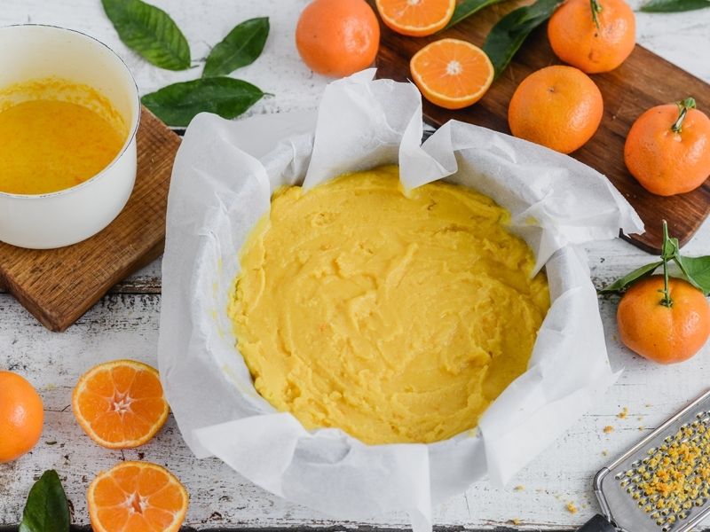 Oddzielamy białka od żółtek. Białka z cukrem i szczyptą soli ubijamy na sztywną pianę. Pod koniec dodajemy żółtka. Masło roztapiamy w rondelku. Mandarynki dokładnie myjemy i z trzech ścieramy skórkę na tarce o małych oczkach. Mąkę przesypujemy do miski. Dodajemy ubitą pianę z jajek, skórkę z mandarynek, ostudzone masło i sok wyciśnięty z sześciu mandarynek. Masę przelewamy do tortownicy wyłożonej papierem do pieczenia o średnicy ok. 20 cm. Pieczemy w piekarniku nagrzanym do 180 C przez 30 min.