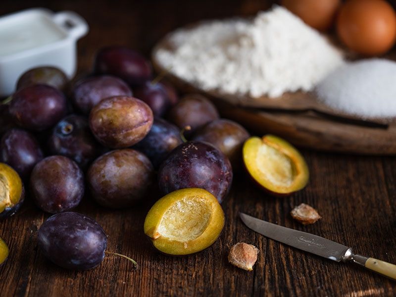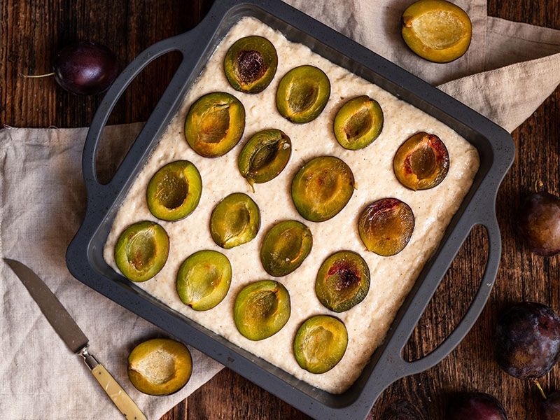 Na wierzch ciasta wykładamy rozkrojone na pół i odpestkowane śliwki, środkiem do góry. Pieczemy w temperaturze 175 stopni C, przez około 45-50 min, do suchego patyczka. Przestudzone ciasto oprószamy cukrem pudrem.