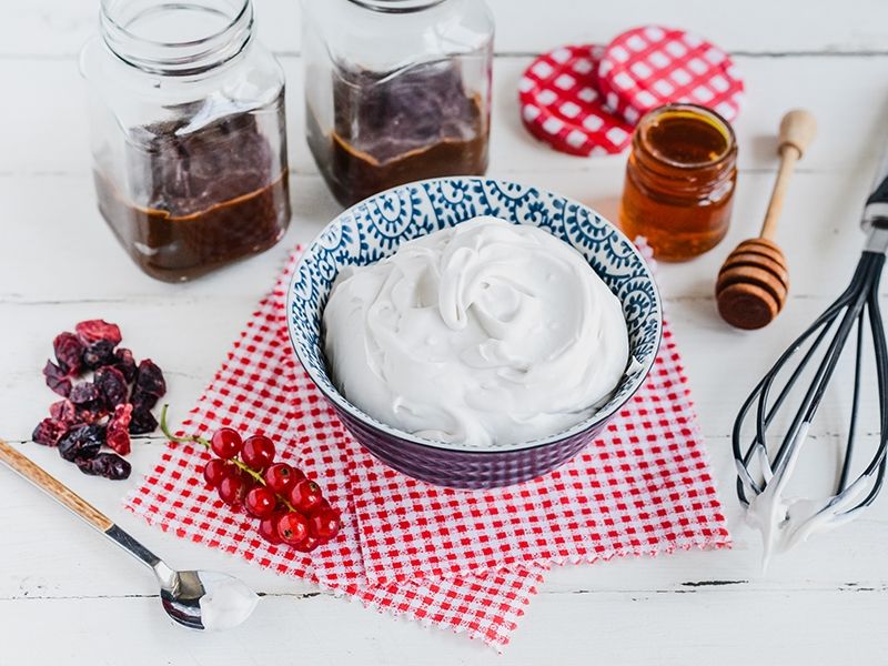 Do śmietanki kokosowej dodajemy cukier i ubijamy kilka minut na sztywną pianę. Powstałą bitą śmietankę nakładamy, jako drugą warstwę, do słoiczków z musem czekoladowym. Posypujemy suszoną żurawiną i uzupełniamy kolejną warstwą śmietanki. Całość dekorujemy świeżymi owocami takimi jak jeżyny czy porzeczki.