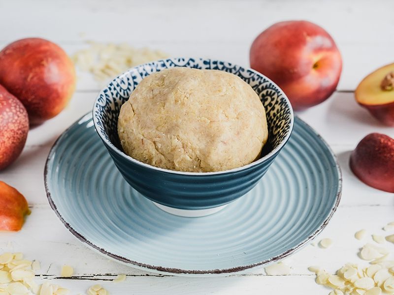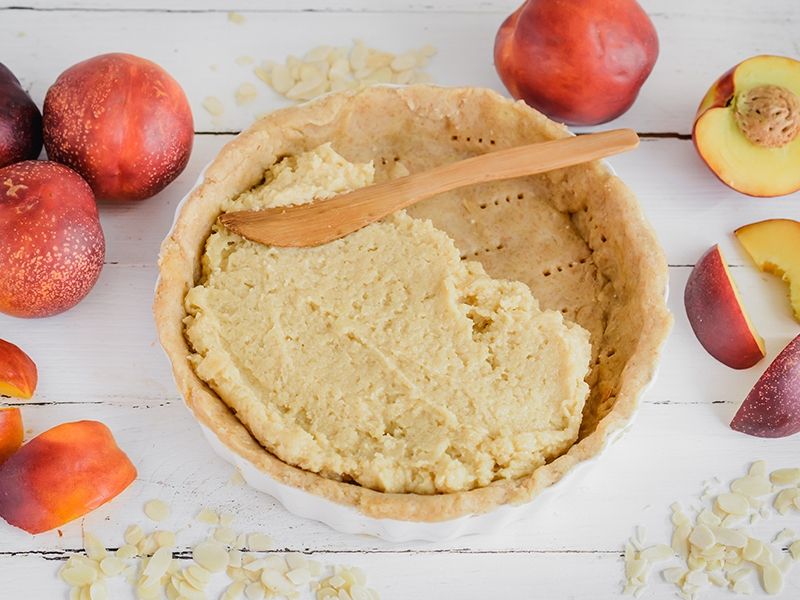 Piekarnik nagrzewamy do 180 C. Formę na tartę smarujemy masłem. Wyjmujemy masę na spód z lodówki i rozwałkowujemy ją na placek o grubości ok 1 cm. Wykładamy nim formę i dziurkujemy za pomocą widelca. Na tartę wylewamy masę migdałową. Wierzch dekorujemy pokrojonymi w plasterki nektarynkami. Ciasto wkładamy do piekarnika na 30 min.